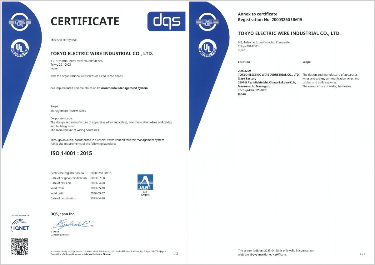 We establish the environmental goal and objective and revise them when necessary in order to implement environmental policies. We thoroughly notify these policies to our employees and the persons working on behalf of us and promote the realization of our environmental management system.